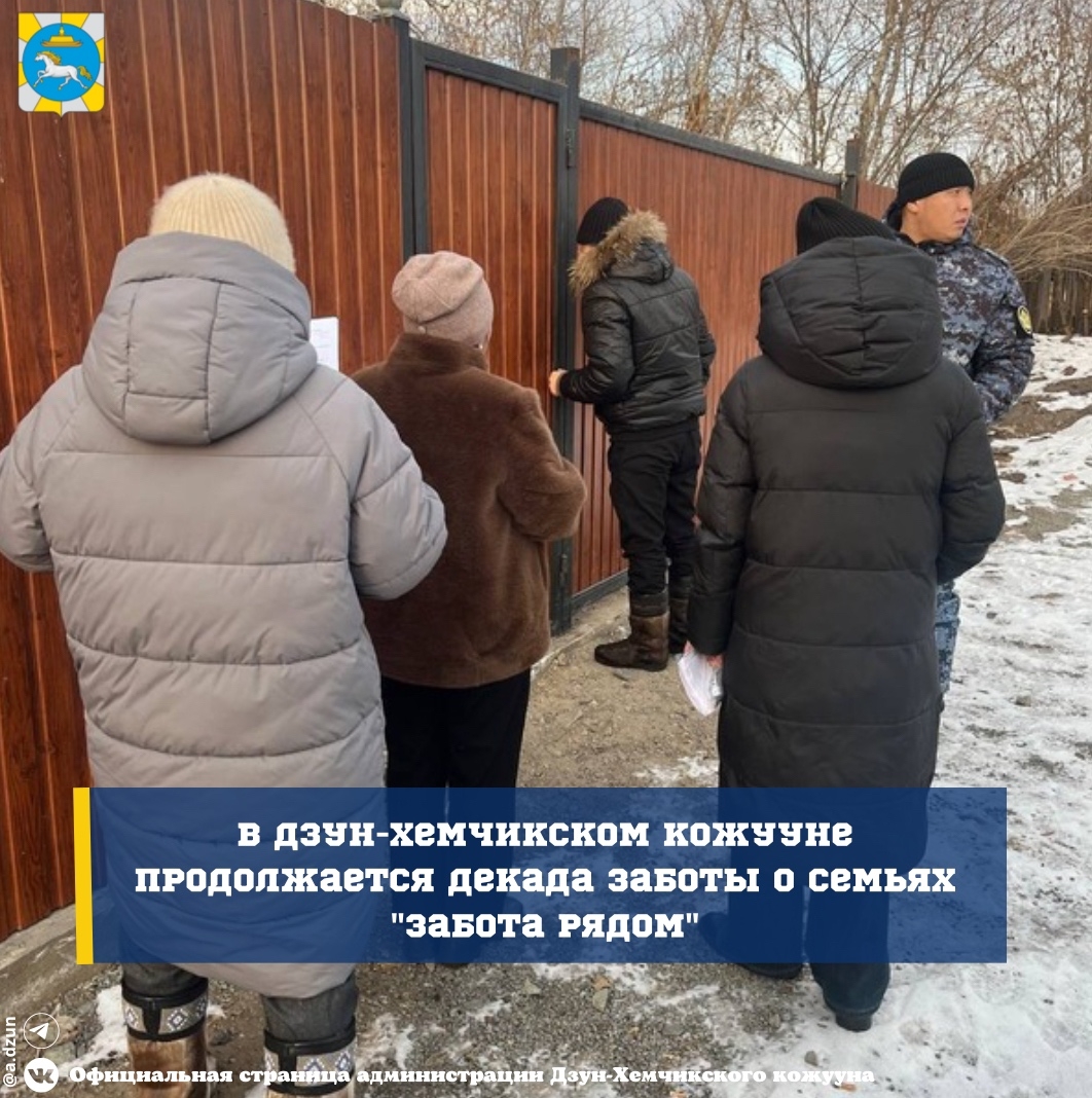В Дзун-Хемчикском кожууне продолжается декада заботы о семьях "Забота рядом" В Дзун-Хемчикском кожууне продолжаются оперативно-профилактические рейды "Забота рядом", направленные на поддержку семей и защиту прав детей. Мероприятие, приуроченное ко Дню матери и продлящееся до 5 декабря, охватывает семьи, находящиеся в трудной жизненной ситуации. В рейдах участвуют представители КДН, специалисты Центра социального обслуживания, сотрудники ОПДН МВД и специалисты по делам молодежи. Они проводят профилактические беседы, проверяют условия проживания и оказывают адресную помощь, давая необходимые рекомендации по улучшению ситуации в семьях. Рейды проводятся еженедельно, обеспечивая постоянную поддержку нуждающимся. Цель акции – профилактика семейного неблагополучия и создание благоприятных условий для развития детей в регионе. #ЗаботаРядом17
