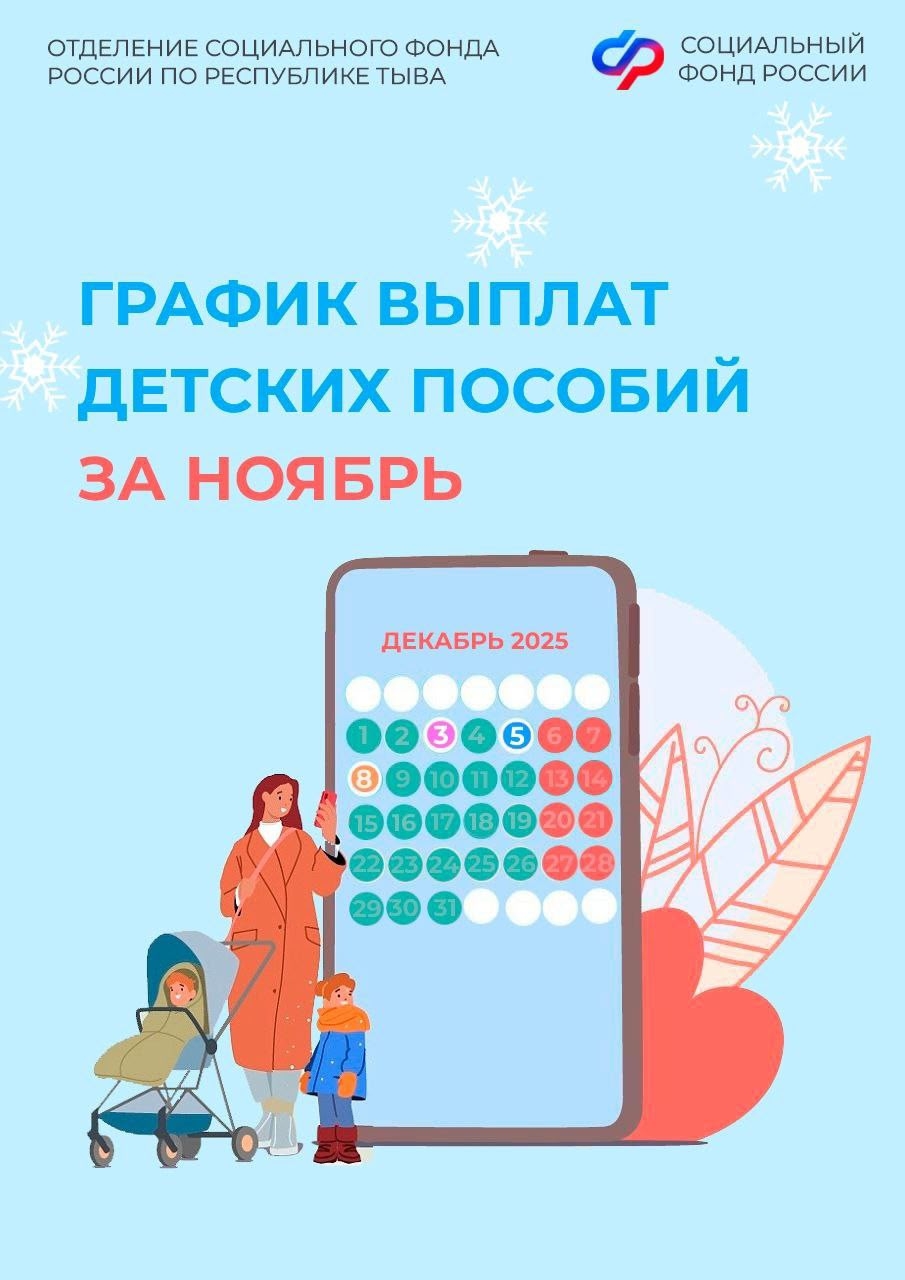 Отделение СФР по Республике Тыва публикует график выплаты детских пособий за ноябрь: