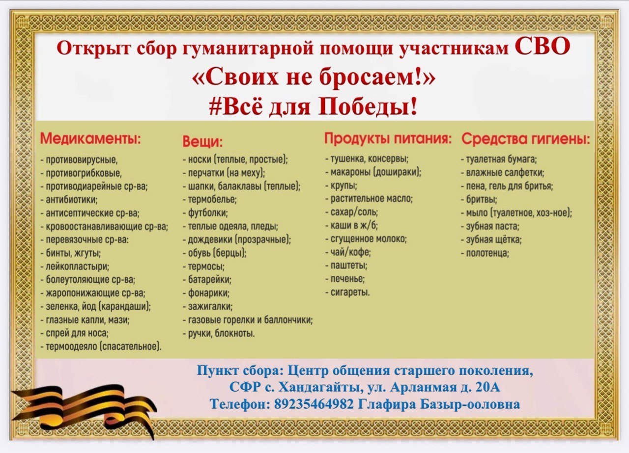 Гуманитарный сбор помощи участникам СВО "СВОих не бросаем!"