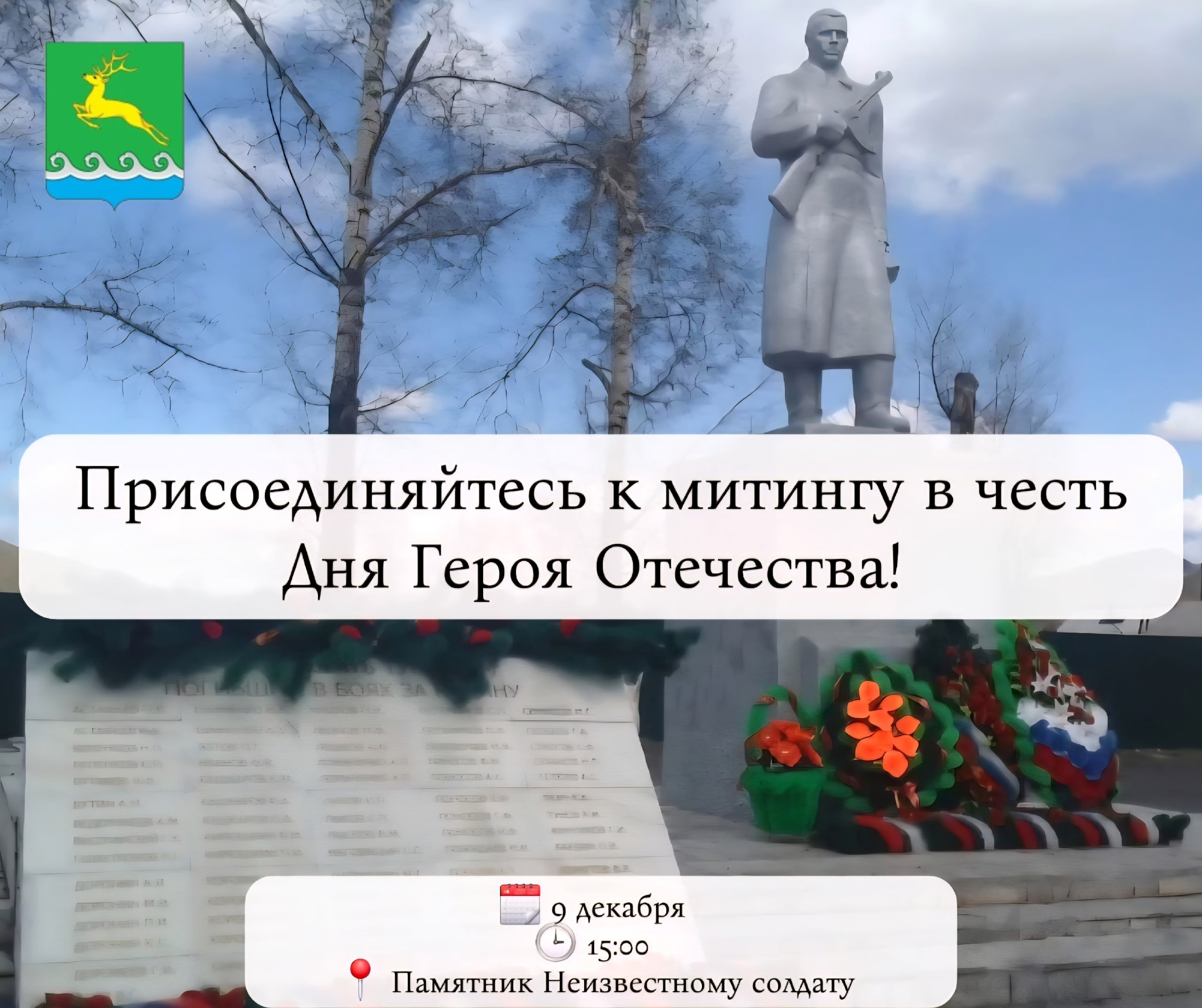 Дорогие друзья! Сегодня, 9 декабря, мы отмечаем День Героя Отечества! В честь этого важного события состоится митинг, который начнется в 15:00 у памятника Неизвестному солдату. Приглашаем всех присоединиться к нам, чтобы отдать дань памяти и уважения нашим героям, которые отдали свои жизни за свободу и независимость нашей страны. Это возможность объединиться и выразить благодарность тем, кто защищал наше Отечество. Не оставайтесь в стороне! Вместе мы можем показать, как важно помнить и ценить подвиги наших соотечественников. #ДеньГерояОтечества #ПамятьГероев #НеизвестныйСолдат #МыПомним #ГероиНашегоВремени Ждем вас!