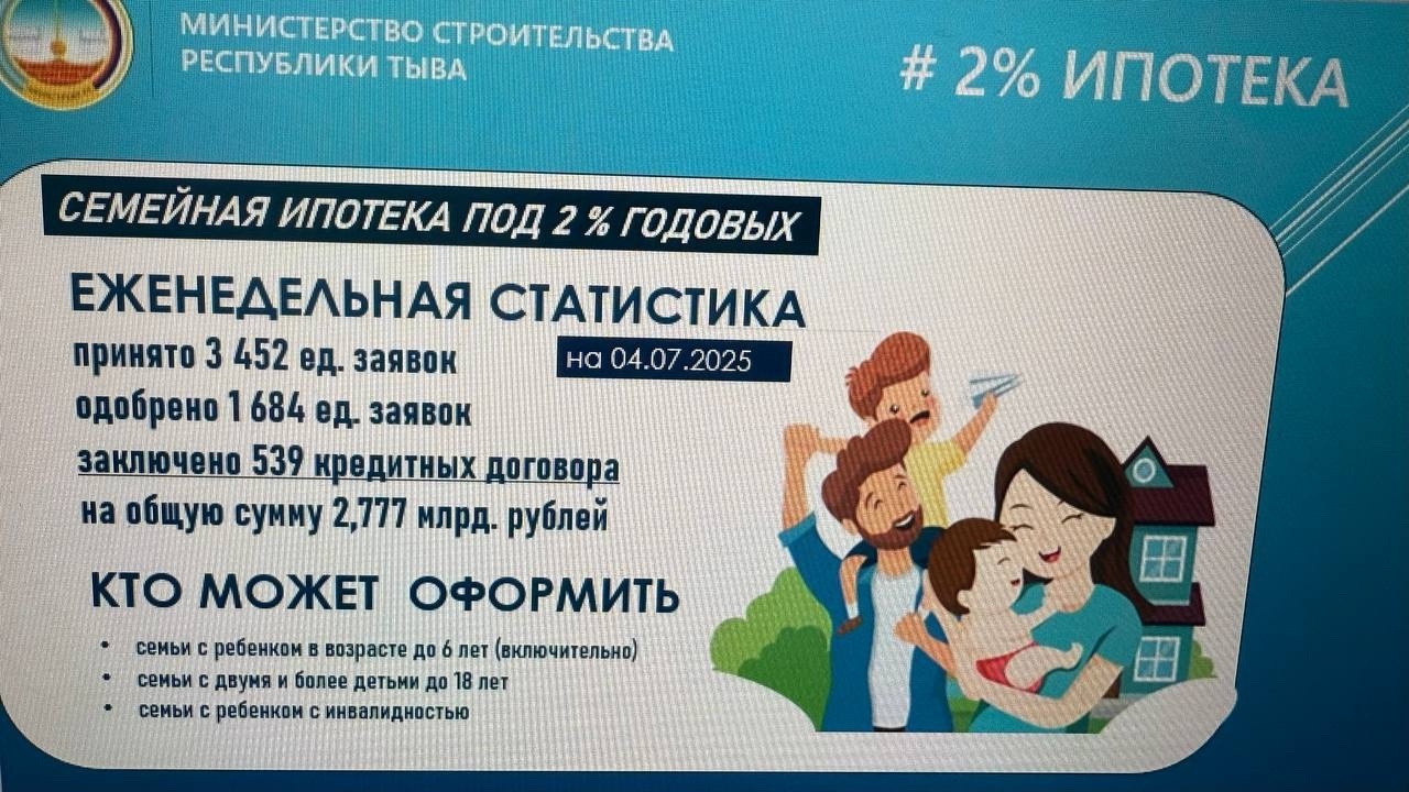 Воспользоваться льготной ипотекой могут семьи с ребёнком до 6 лет, с ребёнком с инвалидностью до 18 лет или с двумя и более детьми до 18 лет. Кредит можно использовать для покупки жилья в новостройке или строительства индивидуального дома с аккредитованным подрядчиком. Максимальный размер займа составляет 6 миллионов рублей, а первоначальный взнос – от 20%. Выдачу кредитов производят Сбербанк и банк «ДОМ.РФ». Кроме этого, для жителей четырех городов республики: Чадана, Турана, Шагонара и Ак-Довурака, условия программы были расширены. Граждане, проживающие в этих населенных пунктах, могут приобретать жильё не только в новостройках, но и на вторичном рынке. Дома должны быть построены не более 20 лет назад и не признаны аварийными. Процентная ставка при этом для них составит 6% годовых. По семейной ипотеке под 2% годовых заявки можно подать до 31 декабря 2025 года.