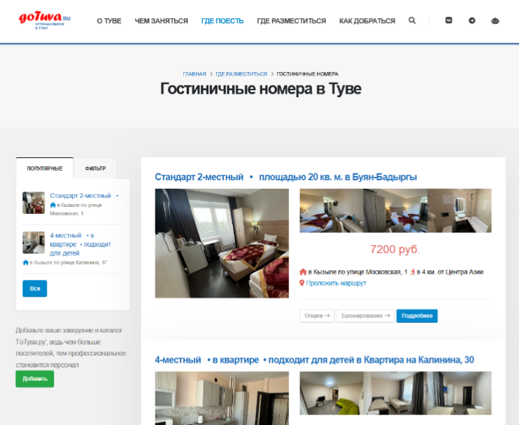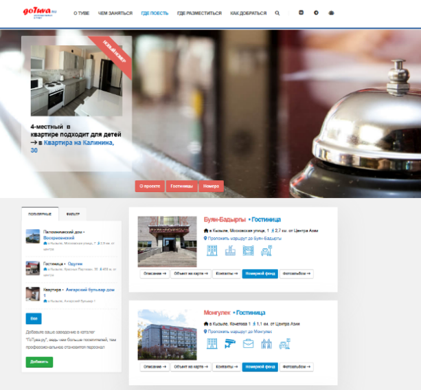 В преддверии Международного буддийского форума, который состоится в Туве в 2026 году, Ситуационный центр Главы Республики Тыва формирует информационный каталог республиканских заведений общественного питания, объектов размещения и гостиничных номеров, сувенирных изделий и иной продукции, а также услуг пассажироперевозок. Владельцы заведений и производители, заинтересованные в организации доступа к информации об услугах и продукции могут разместить свою информацию в каталоге GoTuva.ru на безвозмездной основе