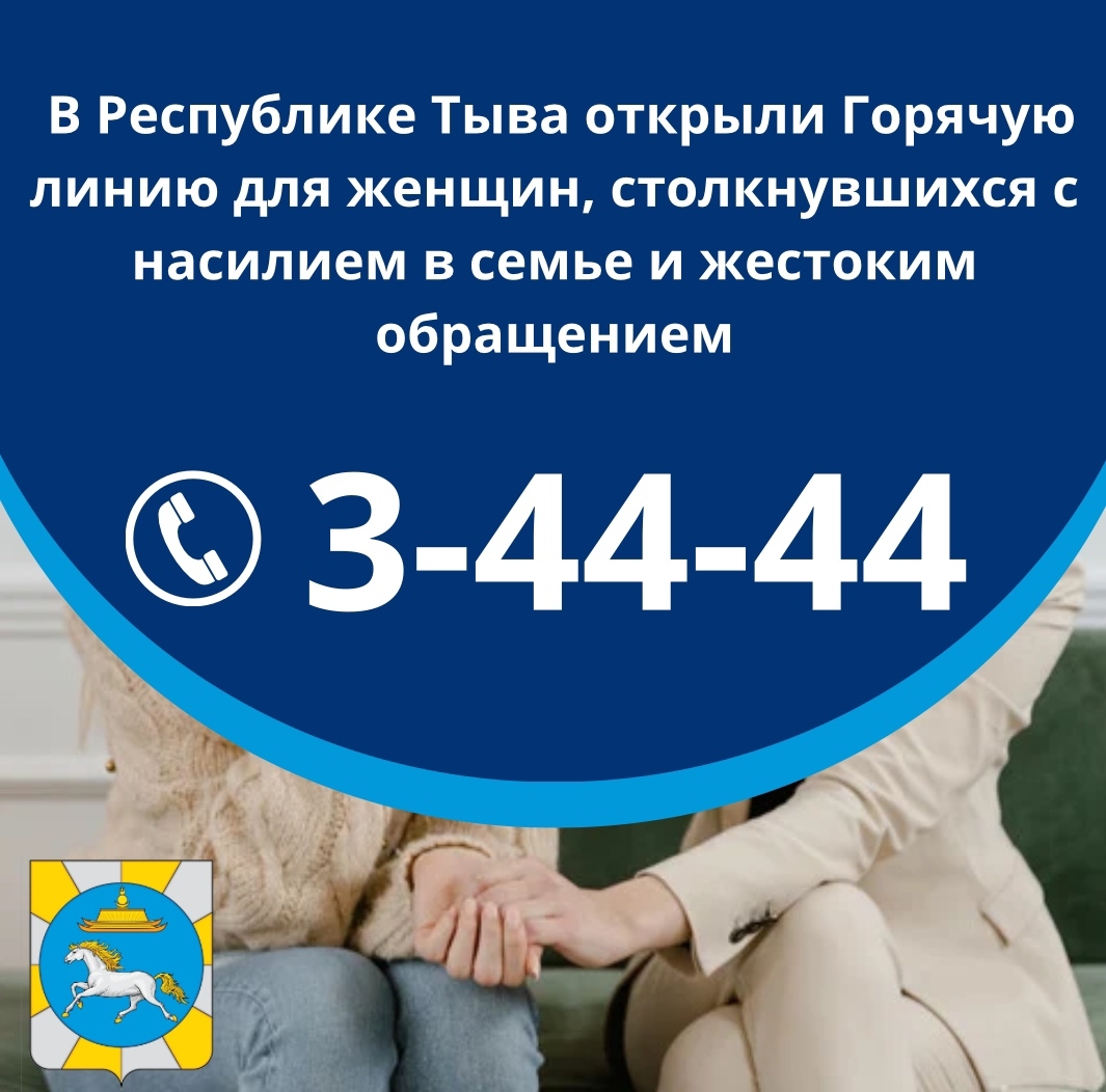 Минтруд Тувы открыло «горячую линию» для помощи женщинам, подвергшимся домашнему наилию 3-44-44 В Республике Тыва открыли Горячую линию для женщин, столкнувшихся с насилием в семье и жестоким обращением Для тех, кому больно и страшно жить... Вы столкнулись с жестокостью и насилием дома? Чувствуете одиночество и отчаянье? Знайте — вы не одни! Теперь в нашем регионе открыт специальный телефон доверия для женщин, попавших в сложную жизненную ситуацию. ▌ Почему звонить именно сюда? - Доступность и конфиденциальность вашего обращения. - Круглосуточная поддержка квалифицированных психологов. - Психологическая помощь по выходу из кризиса. - Информационная помощь и рекомендации организаций помощи женщинам, пострадавшим от домашнего насилия. ▌ Важно помнить: Никогда не поздно обратиться за поддержкой и защитить себя от агрессии и насилия. Ваш звонок — первый шаг к свободе и безопасности. Звоните смело и не бойтесь просить помощи! Тел.: 8 (394-22) 3-44-44 Поможем услышать ваш крик души и поддержать ваше сердце!