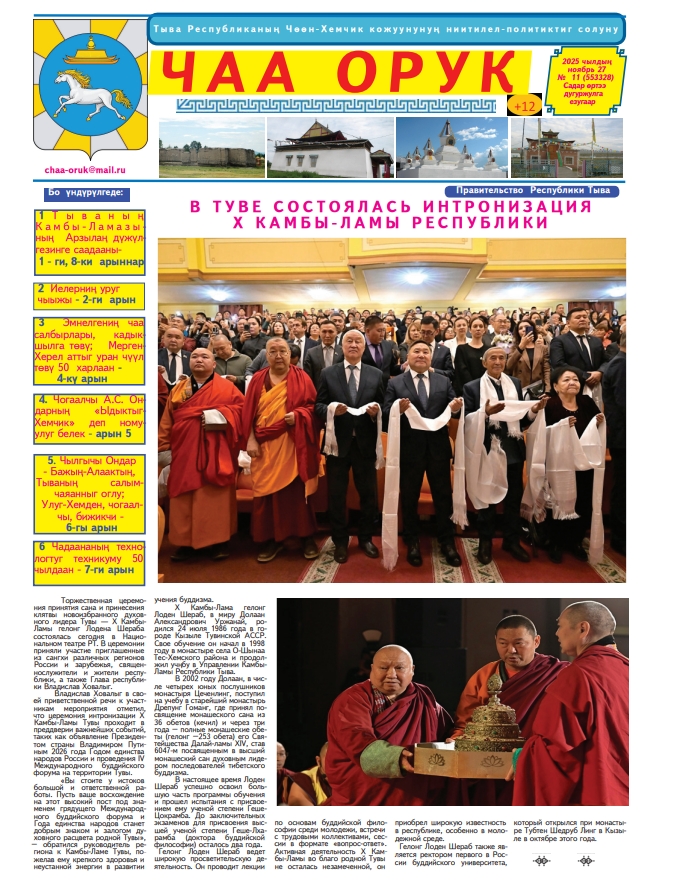 Газета "Чаа орук" № 11 от 27 ноября 2025 года