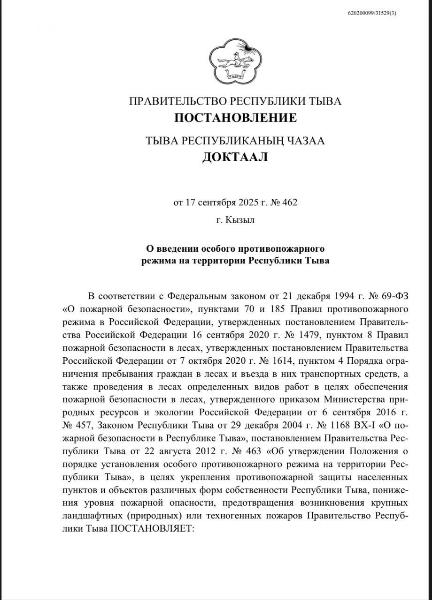 Уважаемые граждане! Особый противопожарный режим в лесах на территории Республики Тыва с частичным запретом продлен до 08.10.2025г.! Пребывание граждан в лесах и въезд в них разрешается с ПРОПУСКОМ!