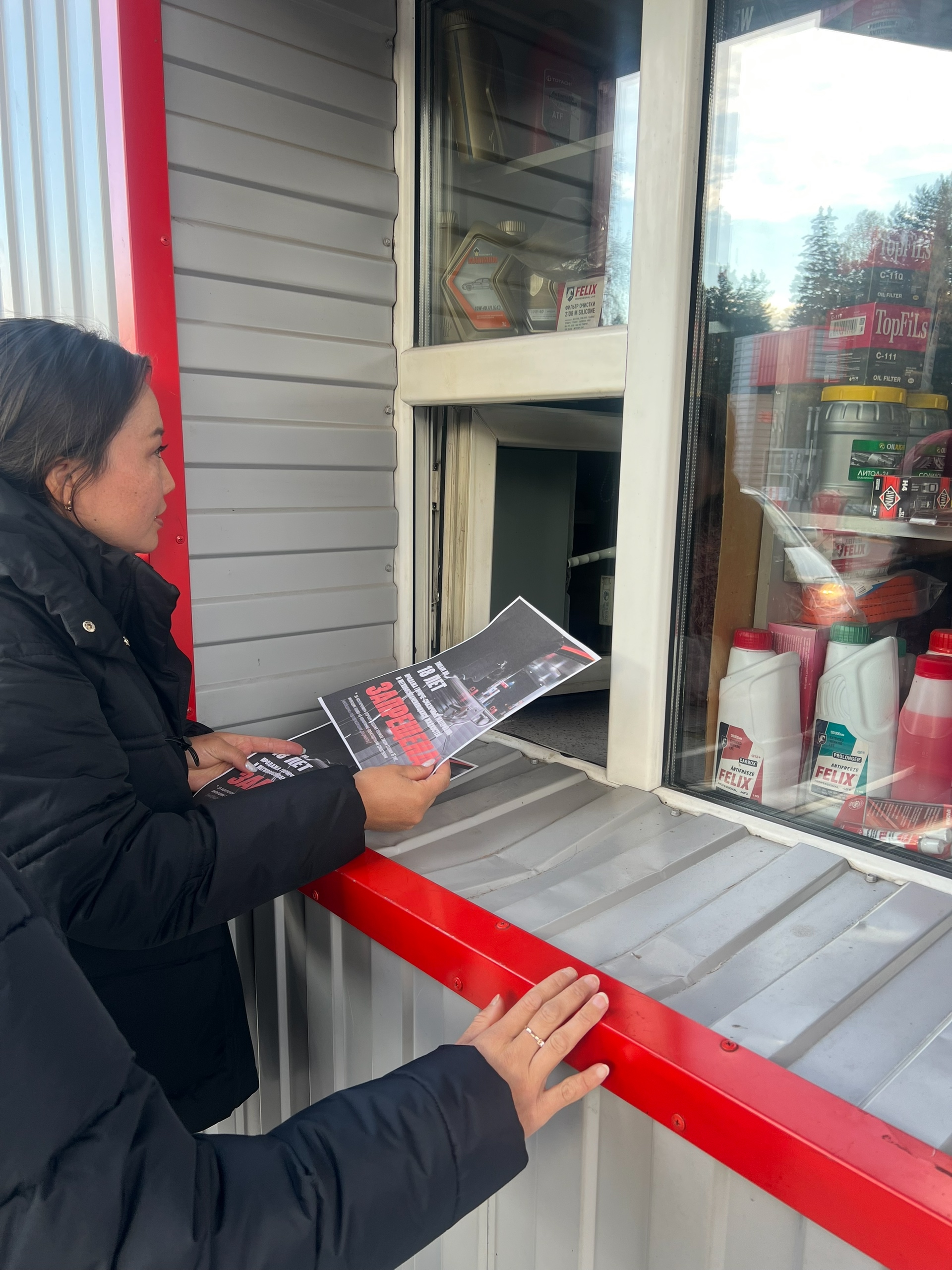 В целях исполнения распоряжения Правительства Республики Тыва от 29.09.2025 года 483-р «О проведении на территории Республики Тыва профилактического мероприятия «Студенческая безопасность:вместе против правонарушений» методист управления образования Монгуш С.А. и консультант-секретарь КДНиЗП Максим Ю.П. провели профилактическую беседу с работниками автозаправочных станций с.Сарыг-Сеп о запрете продаже несовершеннолетним горюче-смазочных материалов.