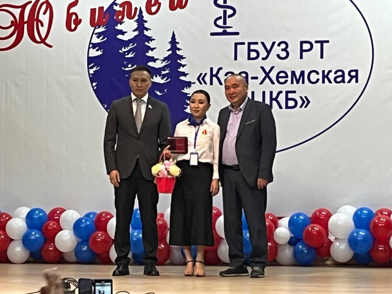 10 октября 2025 года прошло торжественное мероприятие, посвящённое 90-летию Центральной кожуунной больницы Каа-Хемского района. На мероприятие приехали гости- это депутаты Верховного Хурала Республики Тыва Чамбалдоо Н. А, Калбак Д.Д, заместитель министра здравоохранения Республики Тыва Саая Ч. Н., представители других организаций, главные врачи кожуунных больниц республики, ветераны труда. Почетной грамотой Министерства здравоохранения Российской Федерациинагражден врач- травматолог Иргит- оол В. О. За многолетний добросовестный труд в системе здравоохранения Республики Тыва награждены ведомственным знаком отличия «Почетный наставник» Министерства здравоохранения Республики Тыва: Хертек Родина Иргитовна, врач-инфекционист ГБУЗ РТ «Каа-Хемской центральной кожуунной больницы»; Ооржак Валентина Петровна, врач- хирург ГБУЗ РТ «Каа-Хемской центральной кожуунной больницы»; Вяткина Татьяна Викторовна, врач-терапевт ГБУЗ РТ «Каа-Хемской центральной кожуунной больницы»; Распоряжением Верховного хурала (парламента) Республики Тыва, за многолетний добросовестный труд в системе здравоохранения награждены Почетной Грамотой Верховного хурала (парламента) Республики Тыва: Биче-оол Сырын Сергеевич, медицинский брат палатного туберкулезного отделения, Дабакай Виктория Вячеславовна, врача-эпидемиолог, Куржепей Надежда Назаровна, младшая медицинская сестра по уходу за больными, Мамышев Аяс Владимирович, фельдшер скорой медицинской помощи, Орустук Аяна Александровна, младшая медицинская сестра по уходу за больными, Шимит Наталья Георгиевна, медицинская сестра участкового детского поликлинического отделения.            За многолетнюю добросовестную работу в сфере здравоохраненияБлагодарственное письмо Депутата Государственной Думы Федерального собрания Российской Федерации Айдына Николаевича Сарыглара получили:            Иргит-оол Вадим Ооржакович, врач-травматолог,         Козловская Татьяна Семеновна, младшая медицинская сестра по уходу за больными,            Куулар Лариса Хопур-ооловна, медицинская сестрахирургического отделения,            Лукина Надежда Михайловна, делопроизводитель,            Монгуш Елизавета Кызыл-ооловна, санитарка отделения скорой медицинской помощи,            Донгак Айсана Александровна, врач-терапевт. Юбилейной медалью " Заслуженный работник Каа-Хемского района " награждены Долума Неля Монгеевна, акушерка отделения акушерства и гинекологиии Александра Павловна- медицинская сестра. Поздравляем всех врачей, медицинских сестёр и работников с юбилеем и высокими наградами!