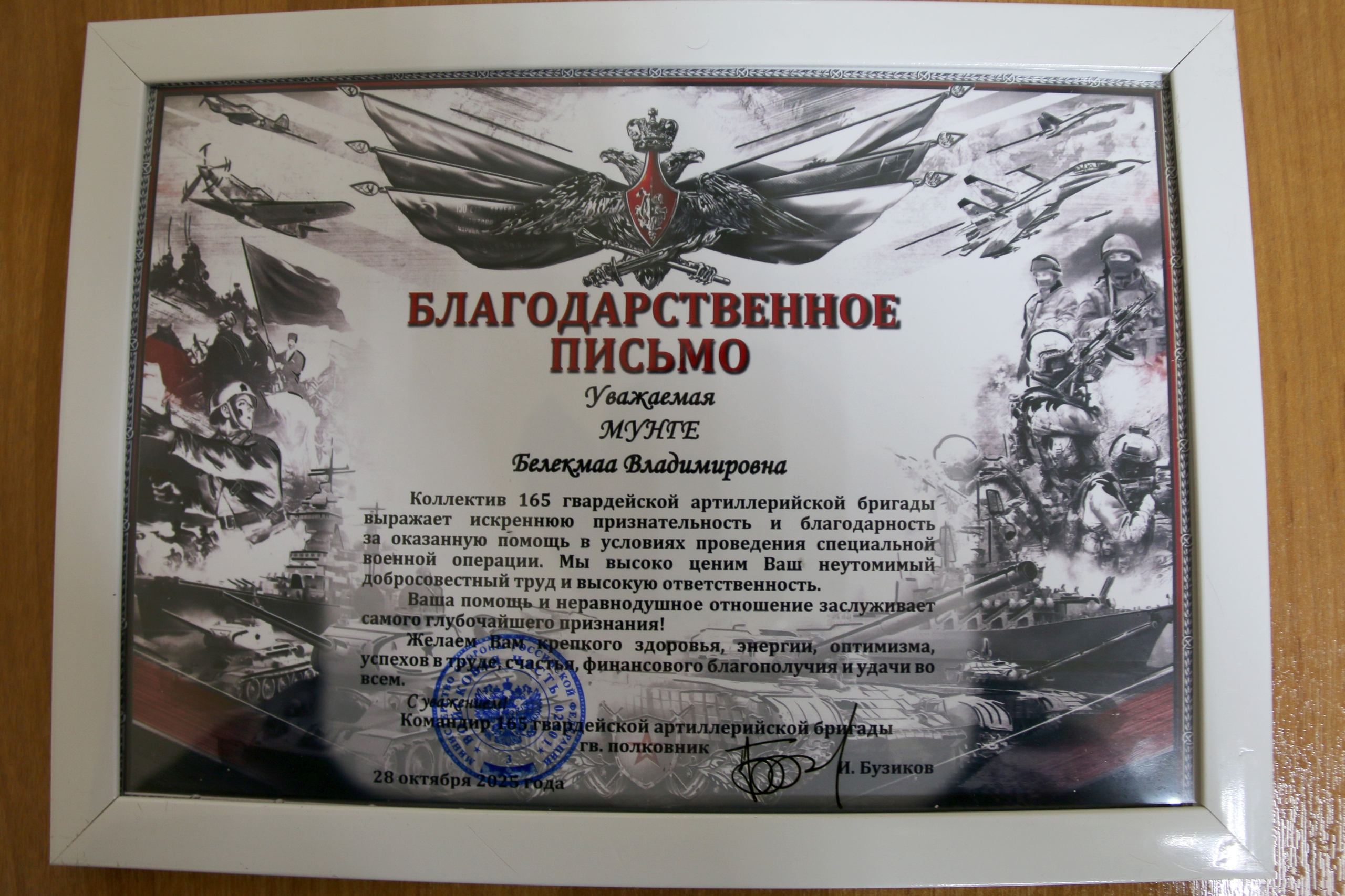 Верховный Хурал (парламент) Республики Тыва получил благодарственные письма от военнослужащих – участников специальной военной операции.