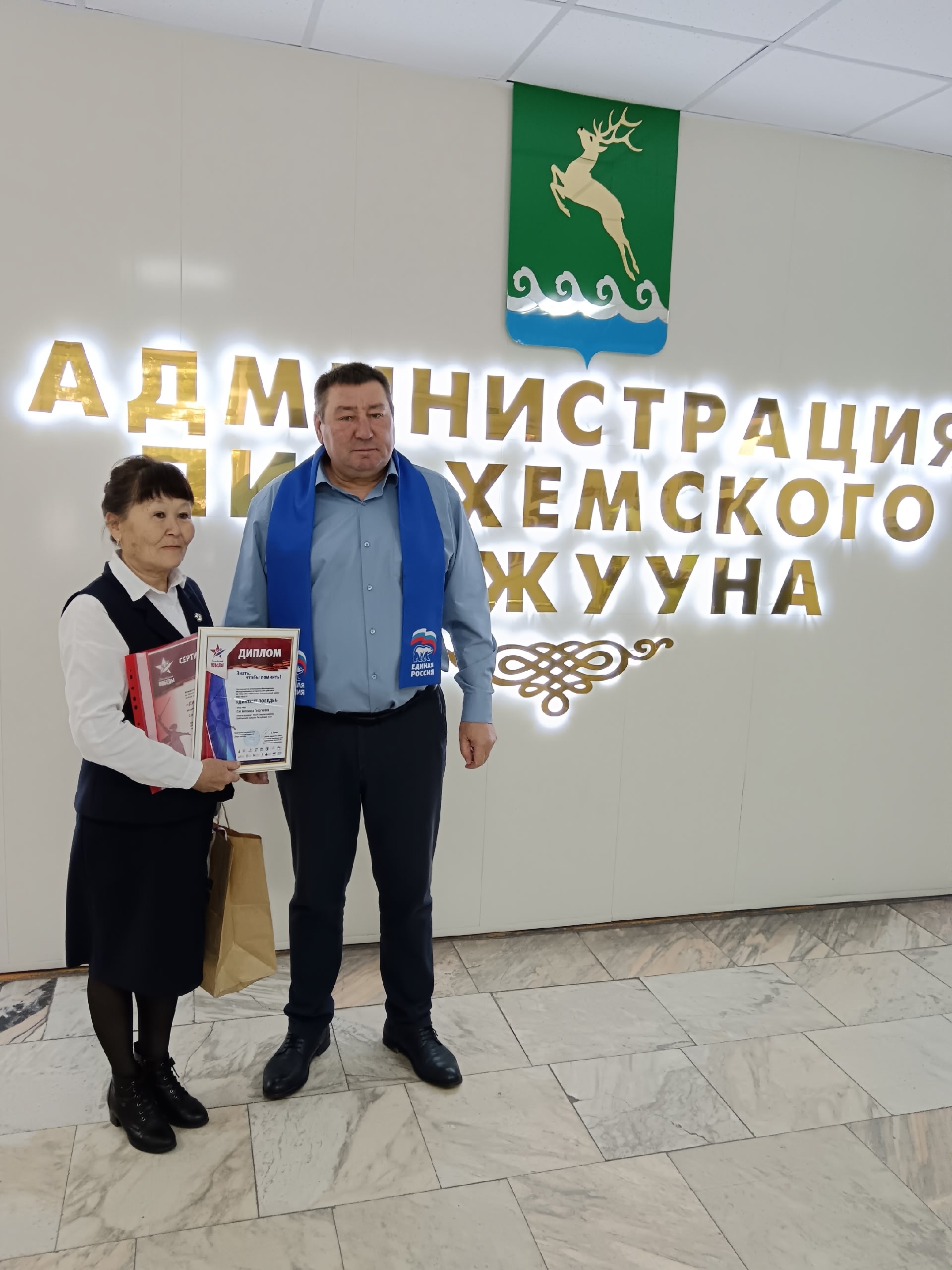Андрей Бородкин, глава кожууна, лично поздравил и вручил диплом Антониде Георгиевне Сат, педагогу-психологу Шивилигской средней школы, ставшей лучшей в регионе в Международном историческом диктанте, посвященном событиям Великой Отечественной войны 1941-1945 годов.