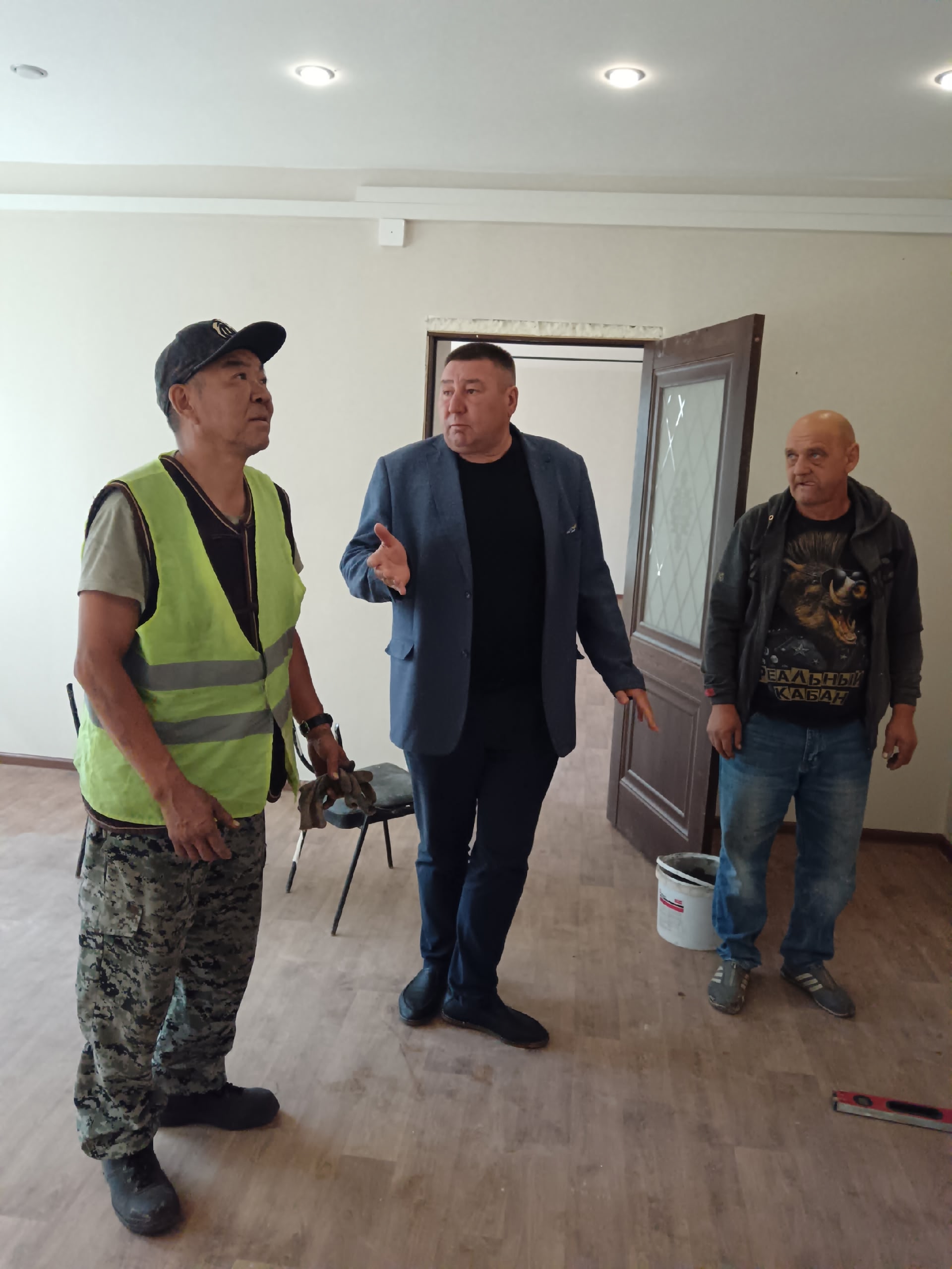 Андрей Бородкин, глава кожууна, проверил ход работ по обновлению центральной районной библиотеки.