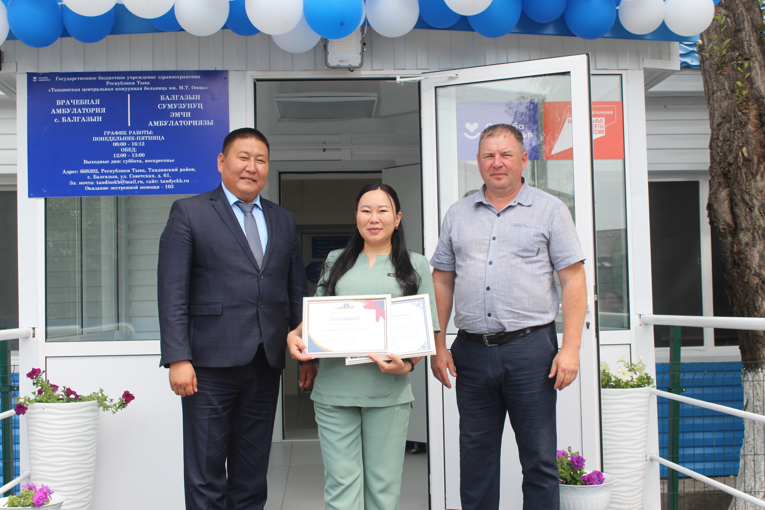 Важное событие в жизни села Балгазын! Сегодня в селе Балгазын произошло значимое событие — после капитального ремонта открылась врачебная амбулатория. Алексей Викторович Сазан-оол, Председатель Администрации Тандинского кожууна, лично принял участие в торжественном открытии обновлённого медицинского учреждения. В рамках мероприятия глава Администрации вручил сертификат на приобретение современного компьютера и принтера, что значительно улучшит качество обслуживания пациентов и оптимизирует работу медицинского персонала. Амбулатория была обновлена в рамках Национального проекта здравоохранения России, который направлен на развитие и модернизацию медицинских учреждений по всей стране. На открытии присутствовали: - Югай Анатолий Константинович, Министр здравоохранения Республики Тыва; - Куулар Радигес Мегенович, Главный врач ГБУЗ РТ «Тандинская ЦКБ им. М.Т. Оюна»; - Попиков Петр Алексеевич, председатель Администрации с. Балгазын; - Гостюхина Оксана Ивановна, главный врач ДНТ Серебрянка; - Ооржак Рада Чоргаловна, заведующая филиалом ПДТ Сой; - врачи ГБУЗ РТ «Тандинская ЦКБ им. М.Т. Оюна»; - уважаемые ветераны, проработавшие много лет в ВА с.Балгазын; - гости и жители с. Балгазын. Капитальный ремонт и оснащение амбулатории современным оборудованием — это важный шаг в развитии здравоохранения нашего района. Теперь жители села Балгазын и близлежащих населённых пунктов смогут получать качественную медицинскую помощь в комфортных условиях.